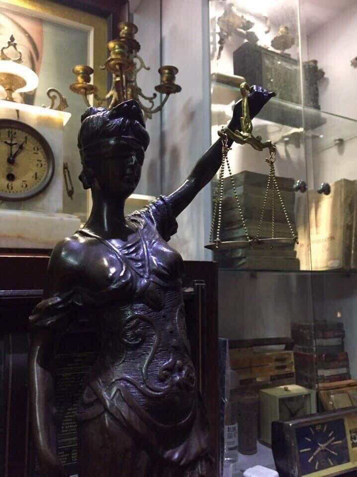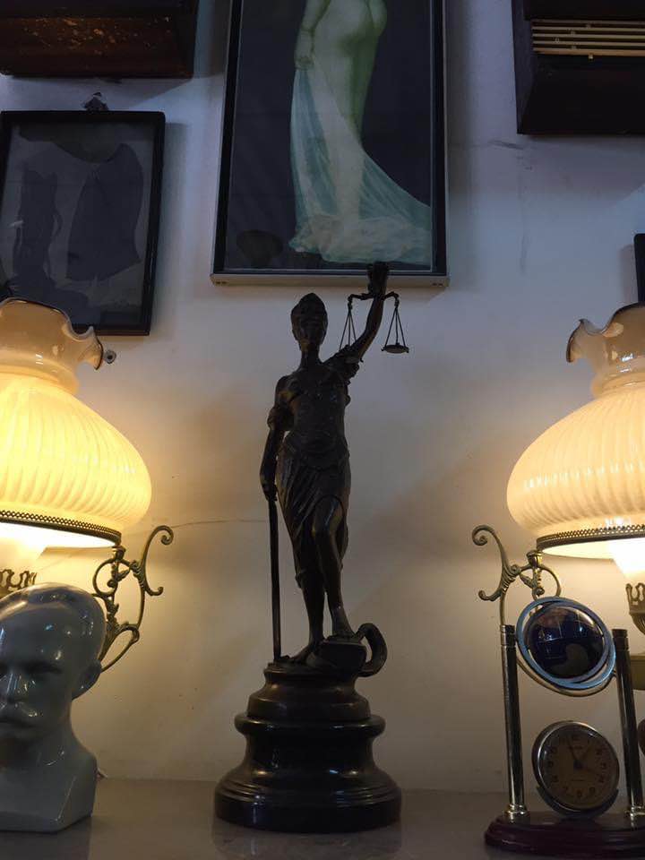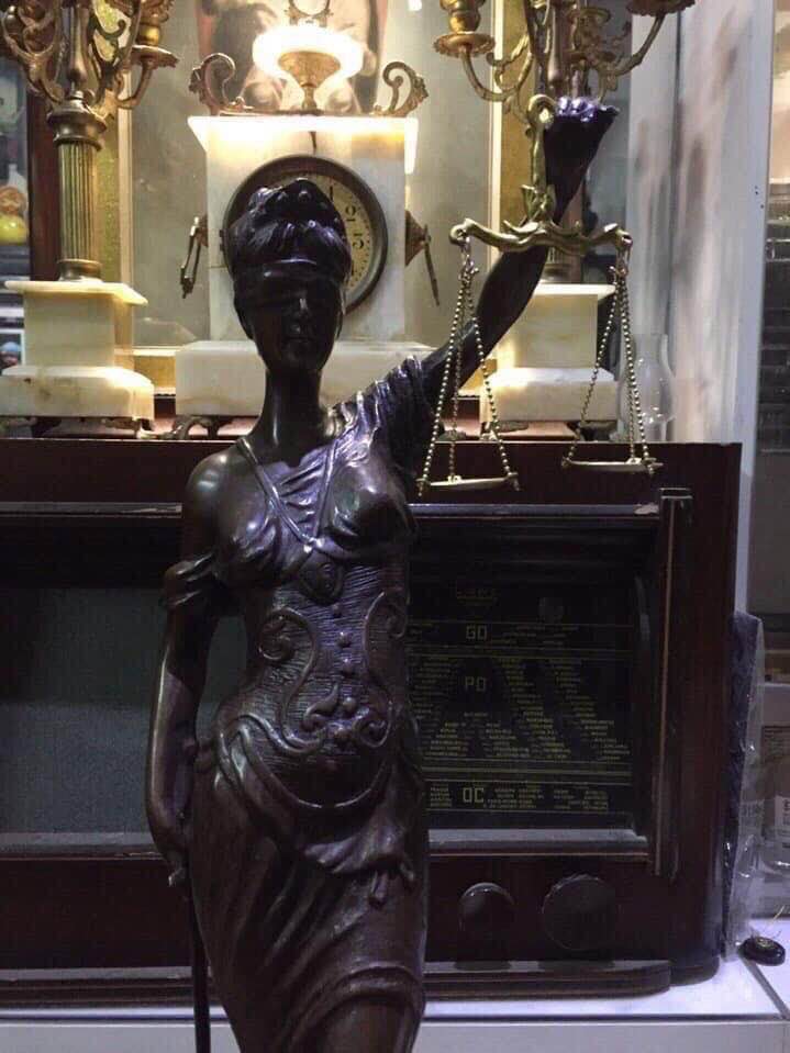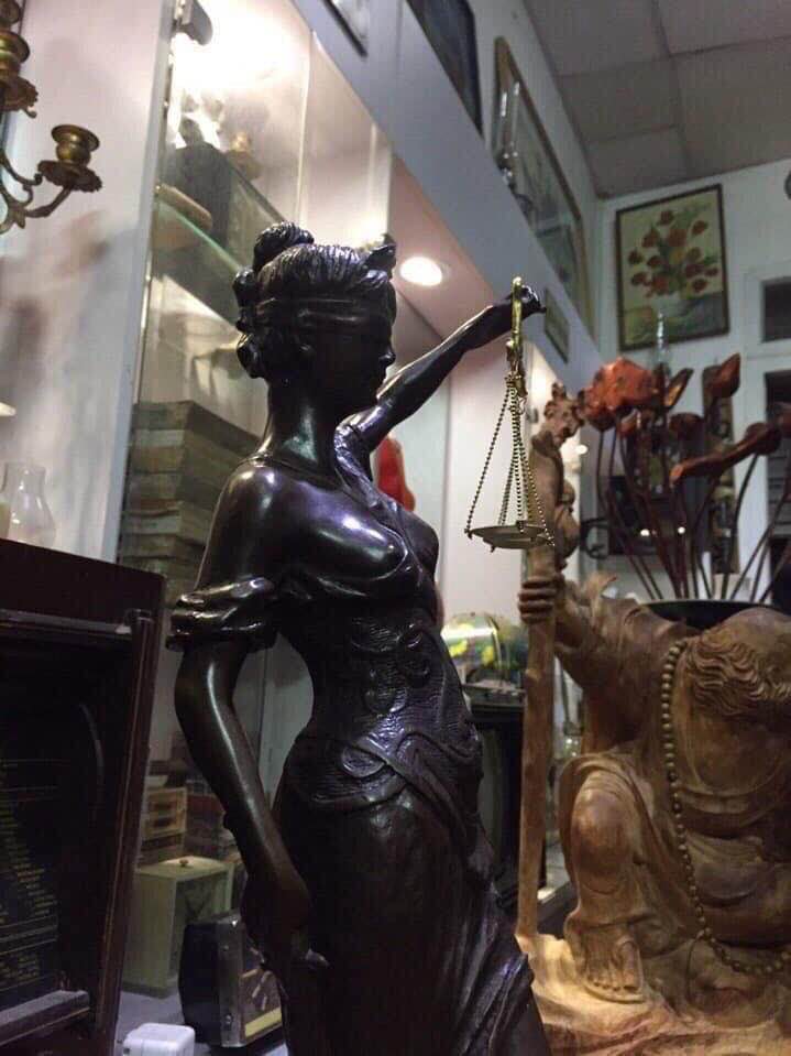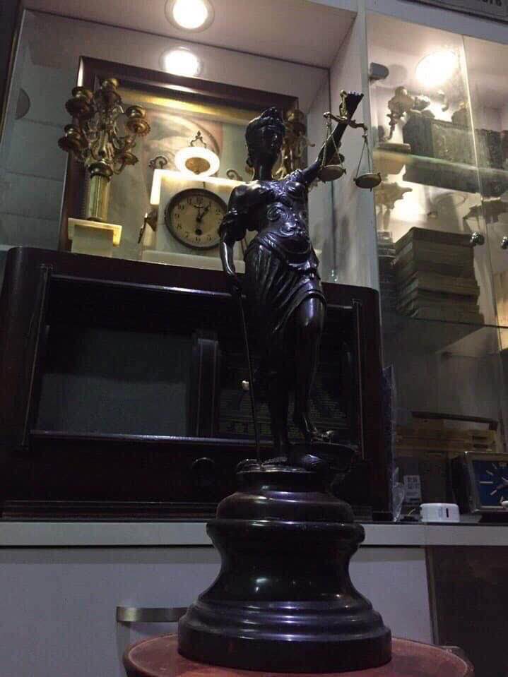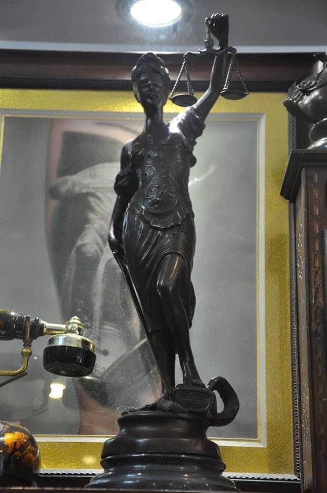 Nữ thần trị vì công lý Justitia, trên tay trái nàng là cán cân công lý dưới chân nàng là rắn hổ mang đã bị khuất phục, tay phải cầm bảo kiếm.