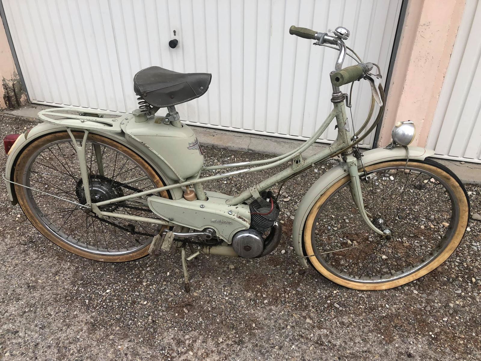 Xe mobylet đời 1950 rin từ nước sơn đến từng con ốc vít .
